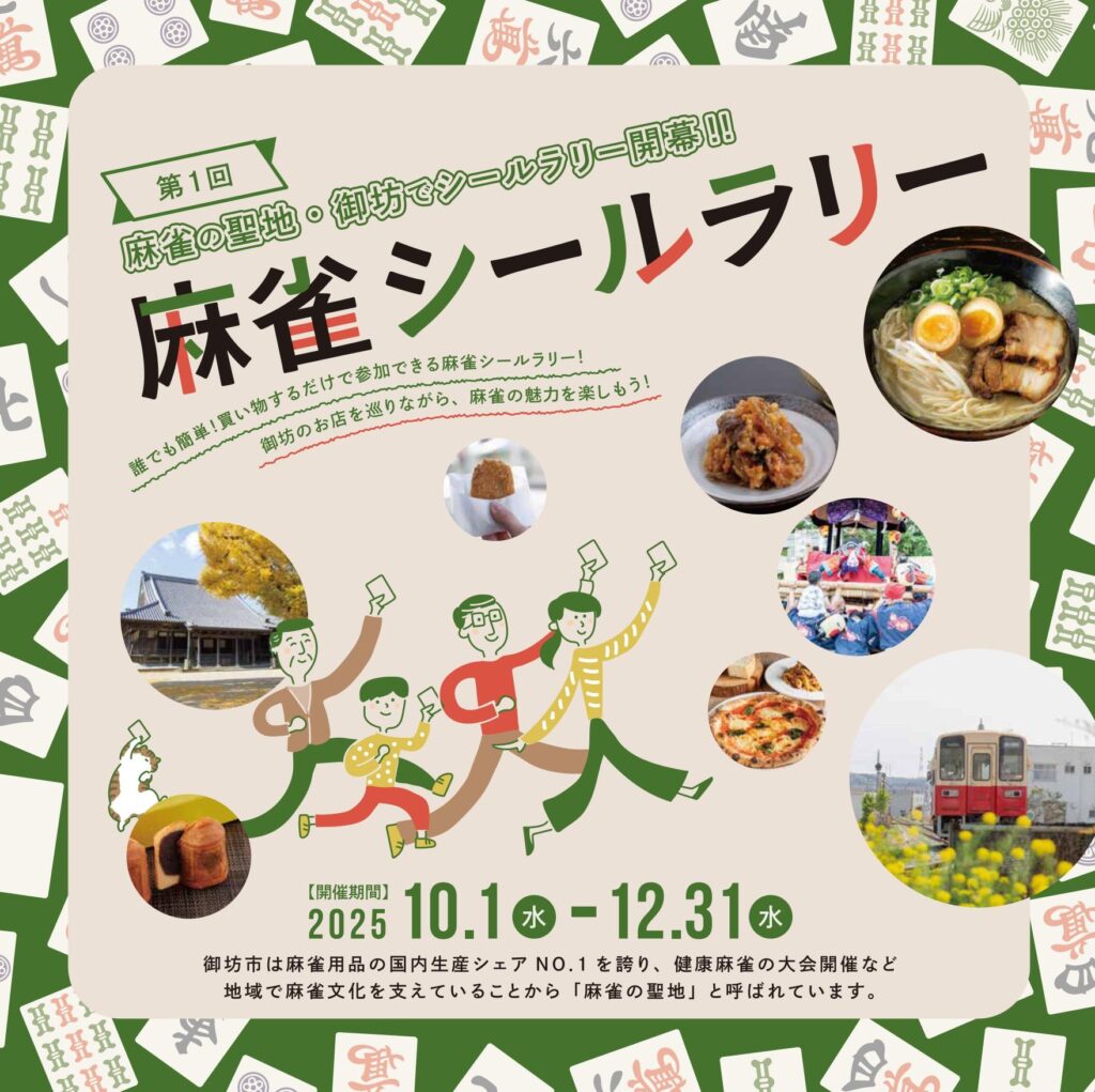 御坊市内の対象店舗をめぐって麻雀牌シールを集める「麻雀シールラリー」が、10月1日(水)よりスタートします!