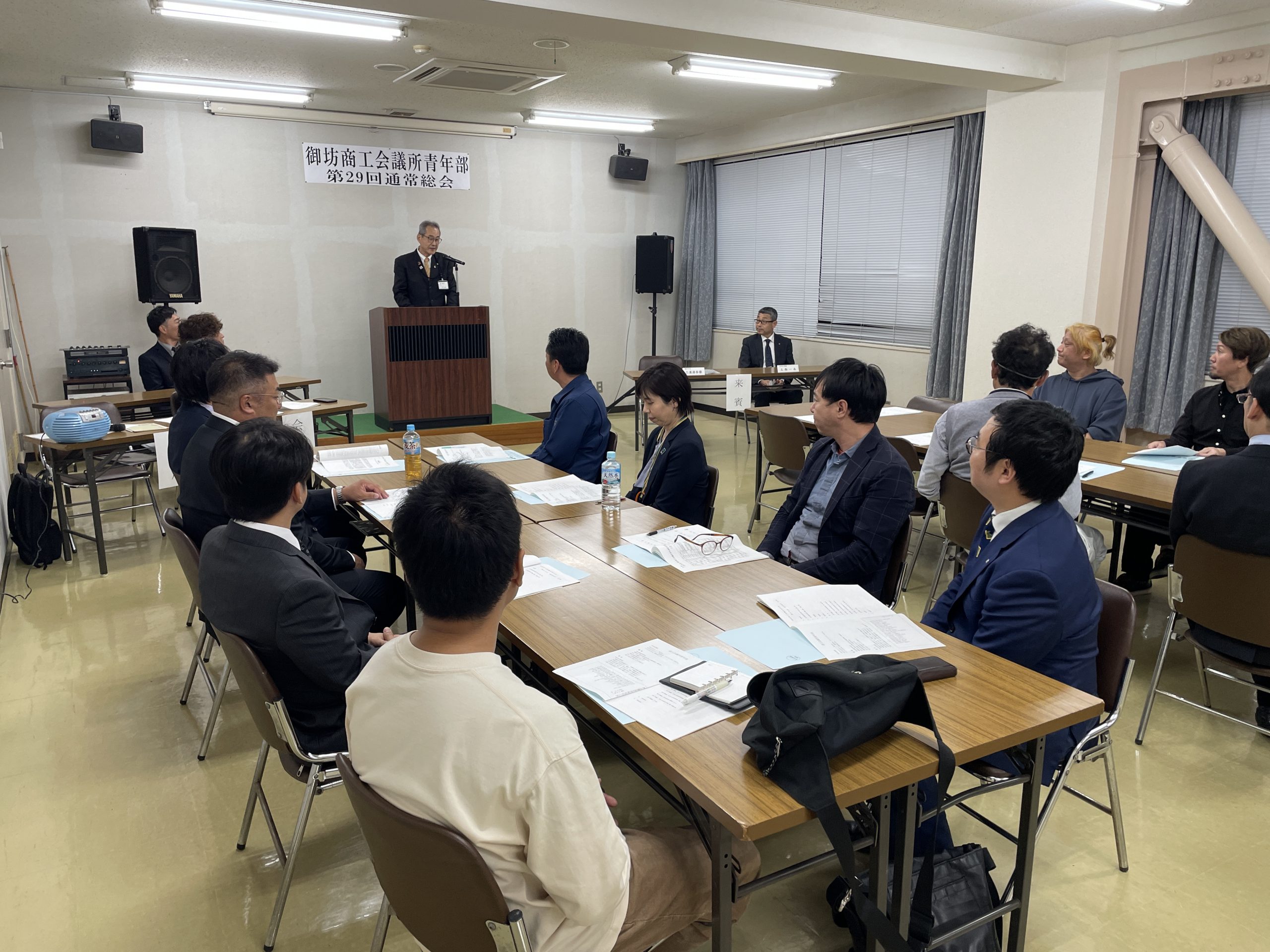 総会では3月に開催した新旧役員会にて上程された議案事項について審議を図りました。令和6年度は、「シゲルの動く城 委員会」、「ともひろぽろぽろ 委員会」、「風の谷のNОW!シバ 委員会」の3委員会を発足させ、1年間活動していきます。また、昨年度をもって卒業された9名を紹介。新年度は59名でのスタートになります。令和6年度は昨年に引き続き小池会長のもと各委員会が一丸となって青年部活動に取り組んで参ります。
