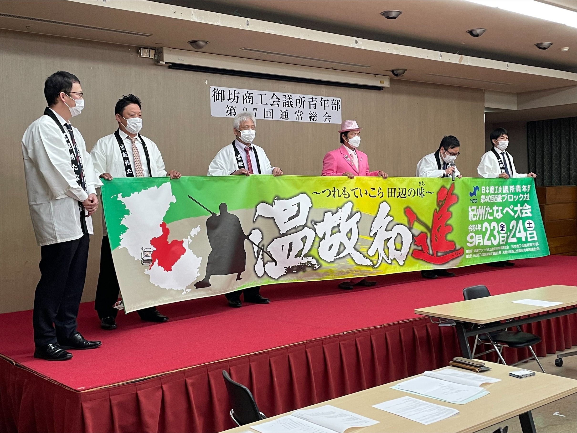 総会の最後には、田辺YEGの皆さんが登場し、田辺の地で開催される『近畿ブロック大会紀州たなべ大会』のPRを行い、総会は閉会しました。