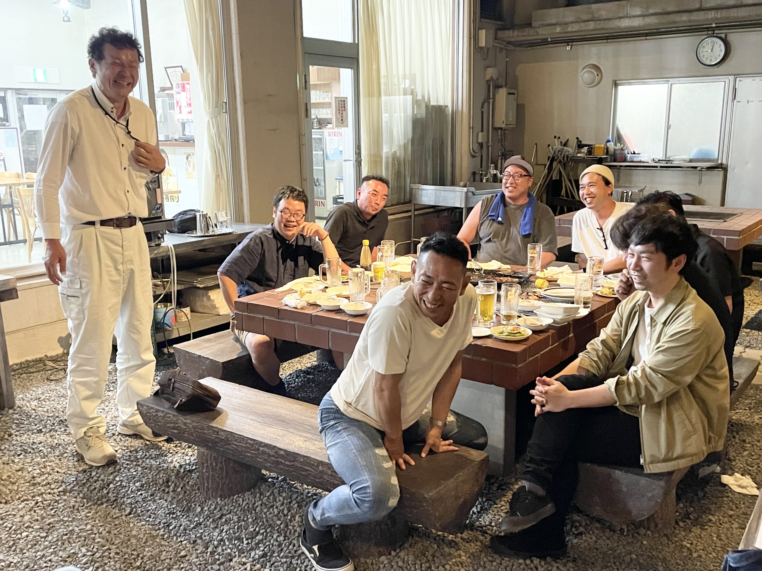 当日は22名が参加し、彩り豊かな食材をアツアツの網の上で豪快に焼きました。開放的な空間でお美味しいお肉とお酒を味わいながら、楽しい時間を過ごすことができました。