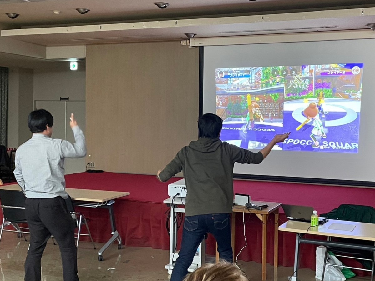 今回の例会ではSwitch Sportsのチャンバラ対決と昔懐かしのスーパーマリオブラザーズをプレイしました。子供のときに遊んでいたゲームとは違う最新のゲームに戸惑いながらも、大いに楽しむことができました。また、今回は海南YEGから竹中副会長がゲストで参加していただき、1月に控えた「第9回県連大会」のPRをしていただきました。