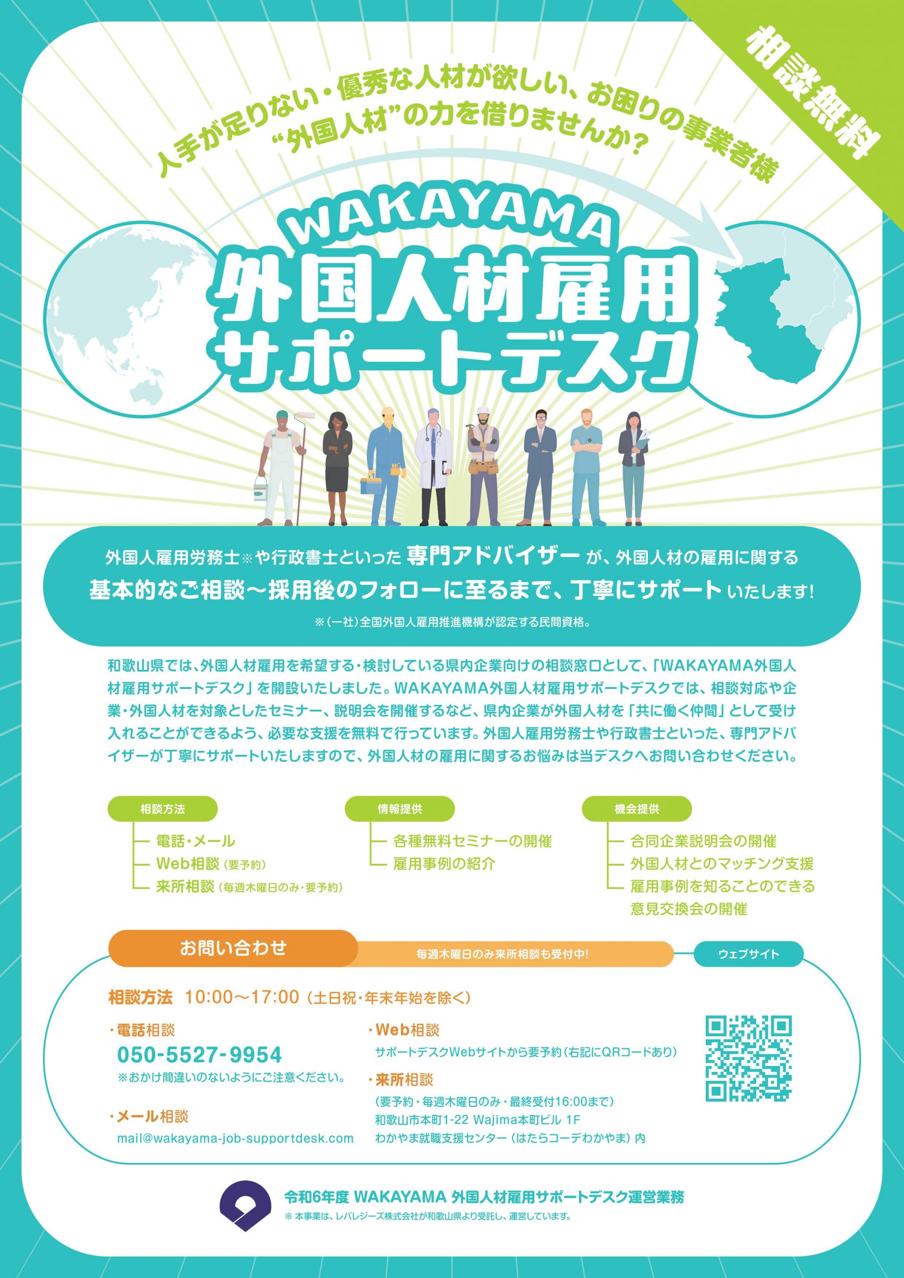 和歌山県では、外国人材の県内就職と定着を促進するため、県内企業及び県内で就職を希望する外国人材向けに、下記の事業を実施しています。